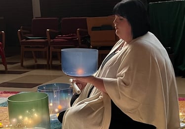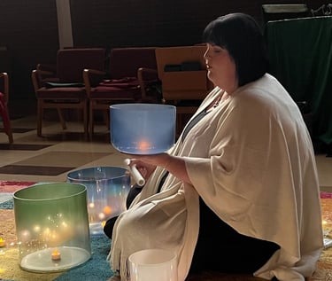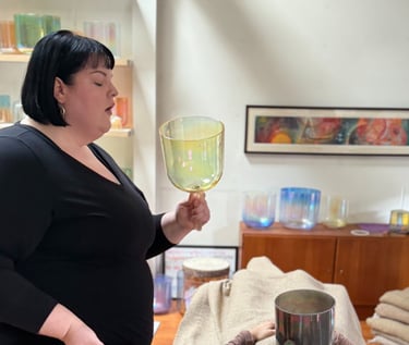 "It's a sound bath from the inside out!" Hum and tone for deep rest, anxiety relief, grounding and centering, and more. Group improvised vocal toning sessions range 60 to 90 minutes, and featuring exercises in deep listening within, vocal play, and crystal singing bowls for a community sound journey we create together in spontaneous harmony.