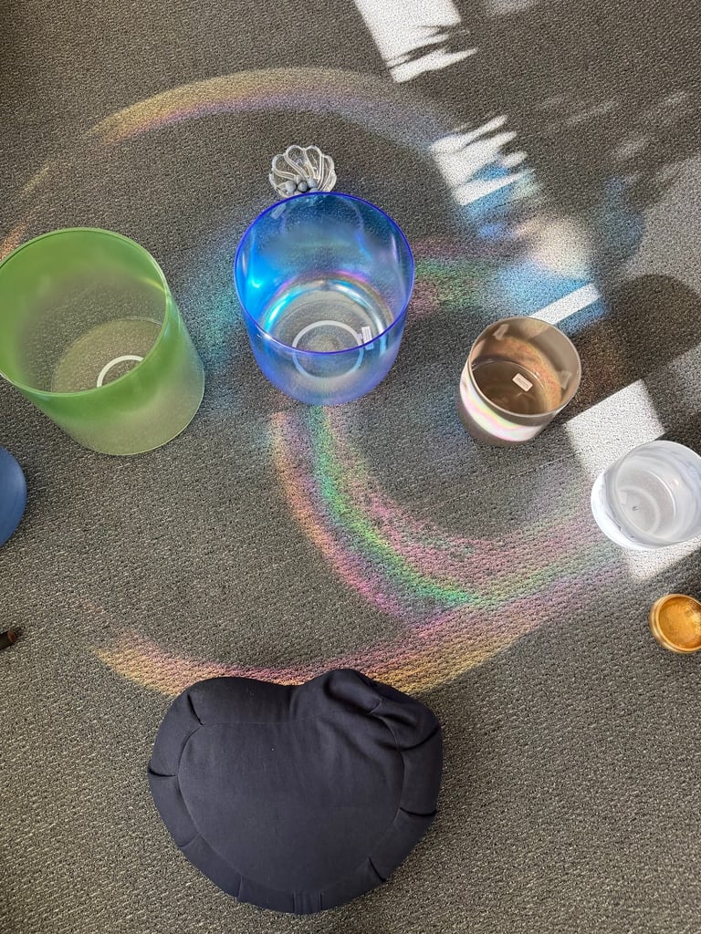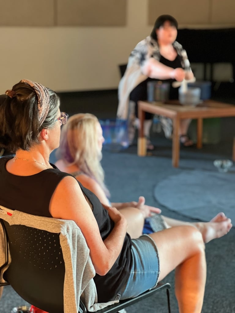 It’s normal to feel shy about our voices—and it’s perfectly fine to come to a session and just listen. This is a safe, no-pressure space with only an open invitation. In group harmonic meditation, the magic isn’t in "singing pretty" or getting it right—it’s in simply showing up for ourselves. It starts with listening inwardly, when you're ready, letting yourself be heard. Your voice matters because it’s yours—whether it’s spoken, toned, or quietly felt. But if you're still feeling hesitant, we recommend bringing an emotional support friend!