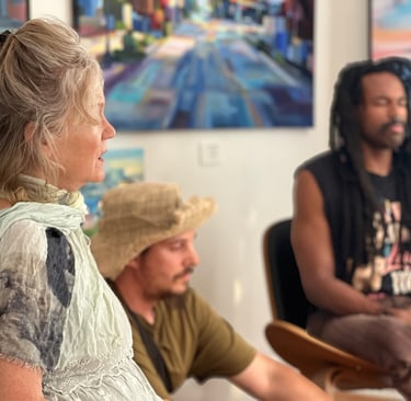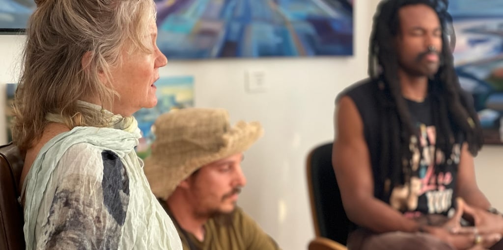 The heart of the session: a free-form group vocal meditation using humming and toning on open vowels. No singing experience needed. Participants are guided to explore their voices in a nonjudgmental, playful space that encourages self-awareness, nervous system regulation, and spontaneous group harmony.